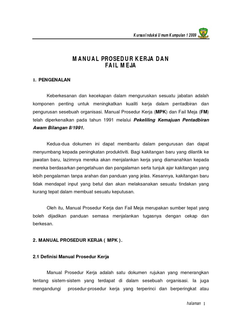 Manual Prosedur Kerja Dan Fail Meja Pdf
