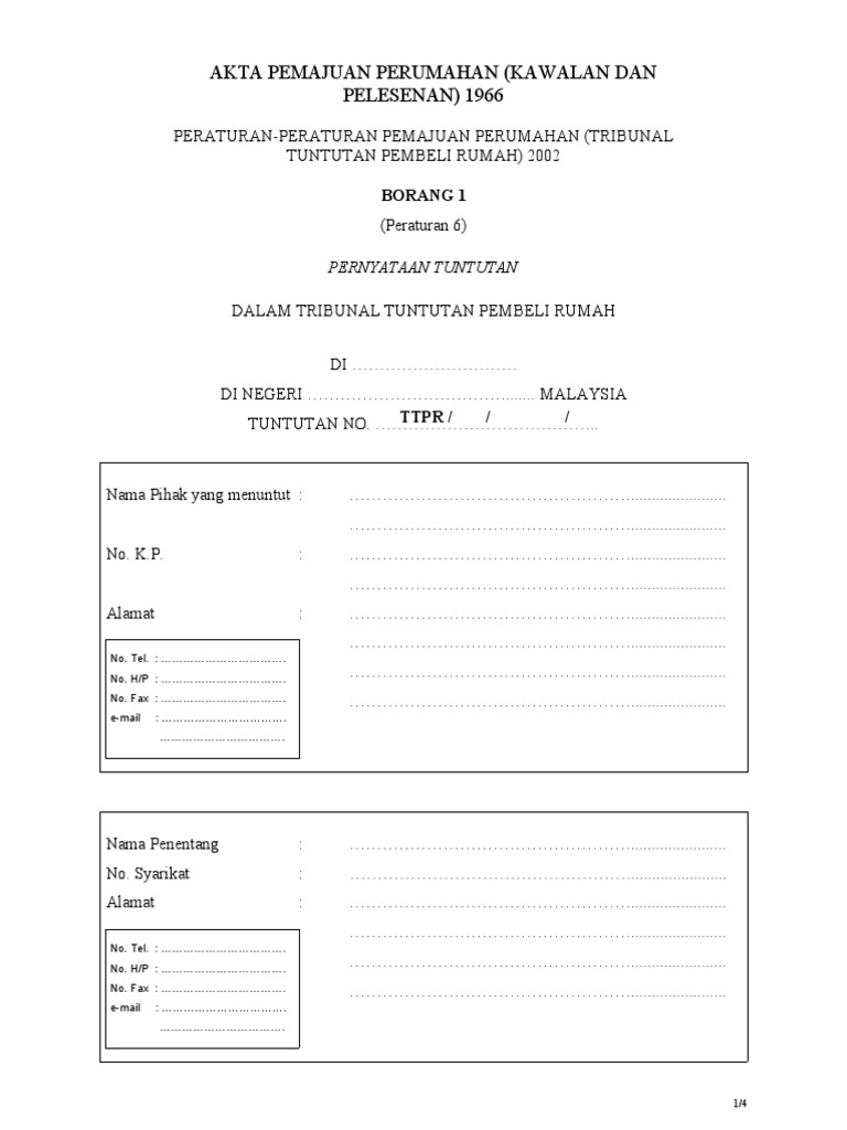 Setelah menyiapkan Borang ini anda hendaklah memfailkan Borang ini dalam 4 salinan di Pejabat Pendaftaran Tribunal. Posted on February 2 2021. Selamat Datang ke Tribunal Tuntutan Pembeli Rumah.