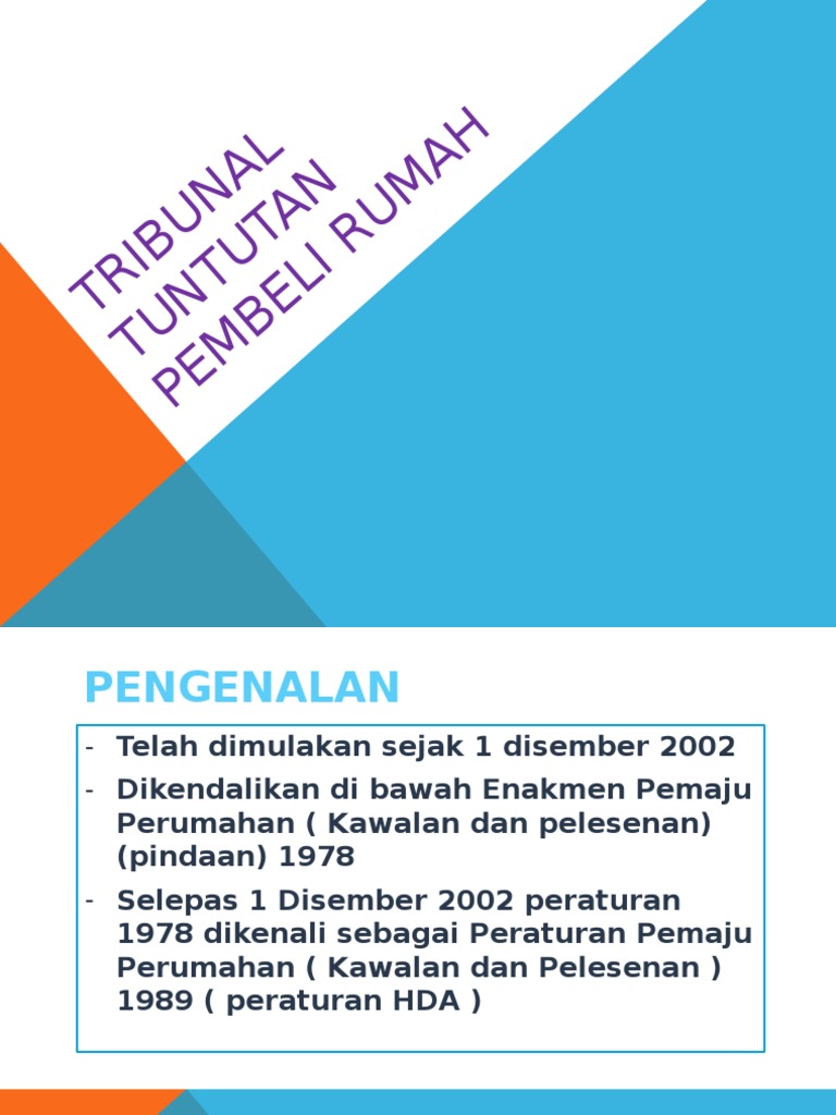 Tribunal Tuntutan Pembeli Perumahan TTPP merupakan satu badan bebas yang ditubuhkan ekoran pindaan kepada Enakmen Pemajuan Perumahan Kawalan dan Perlesenan 1978. The 2nd respondent in both appeals are the. Anda hendaklah membayar fi pemfailan sebanyak RM10.